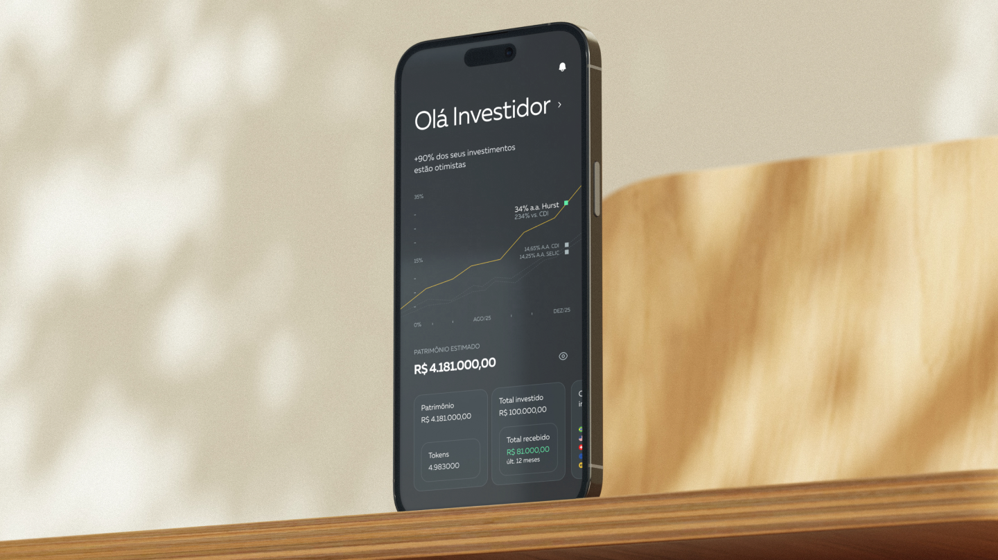 Investidores da Hurst contratavam produtos variados — royalties, CRAs, precatórios, imóveis — e recebiam PDFs inconsistentes a cada operação. Não havia tela que consolidasse patrimônio, comparasse com CDI ou mostrasse o próximo pagamento.